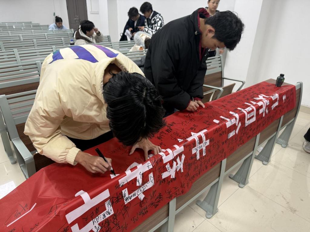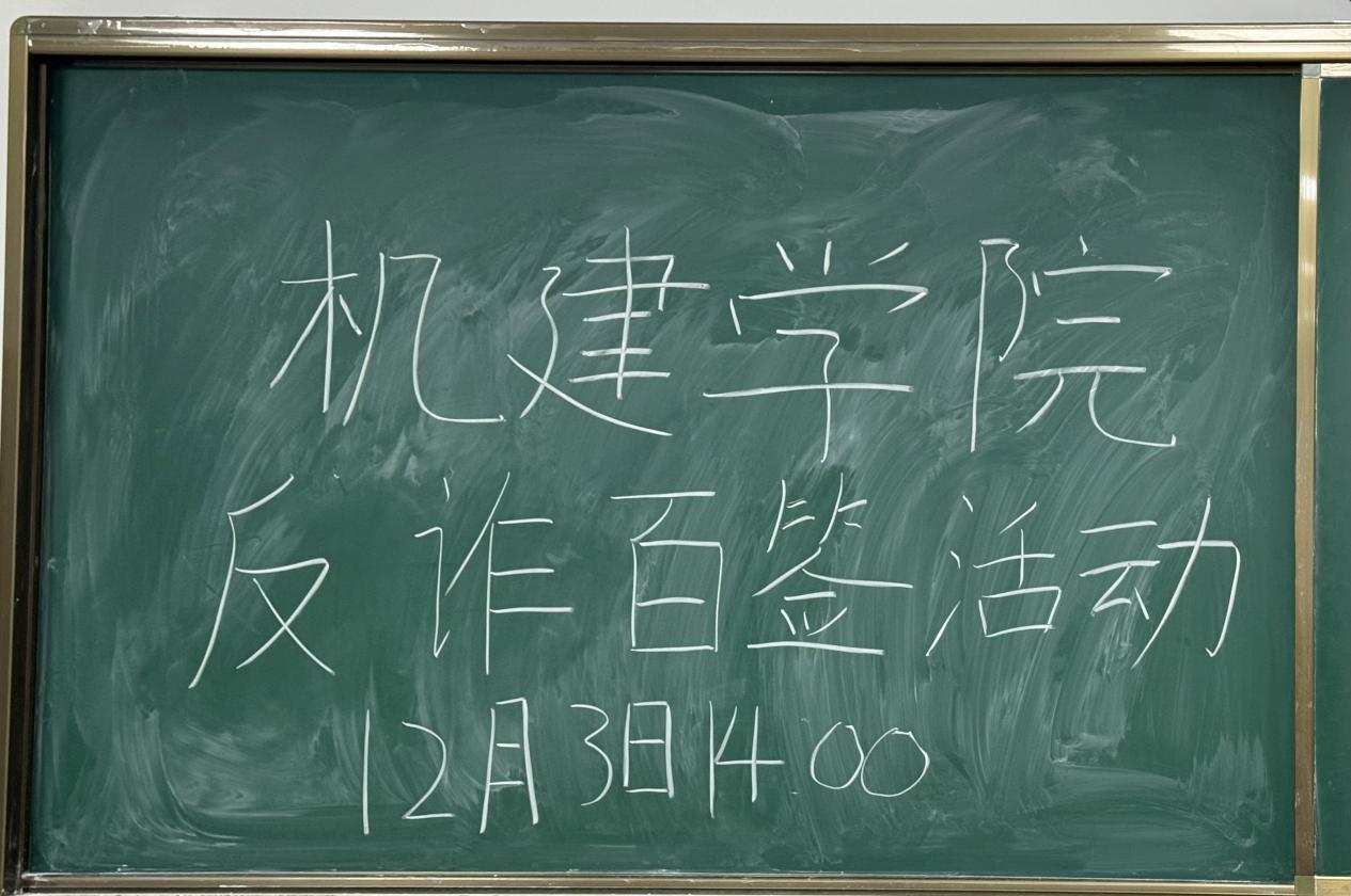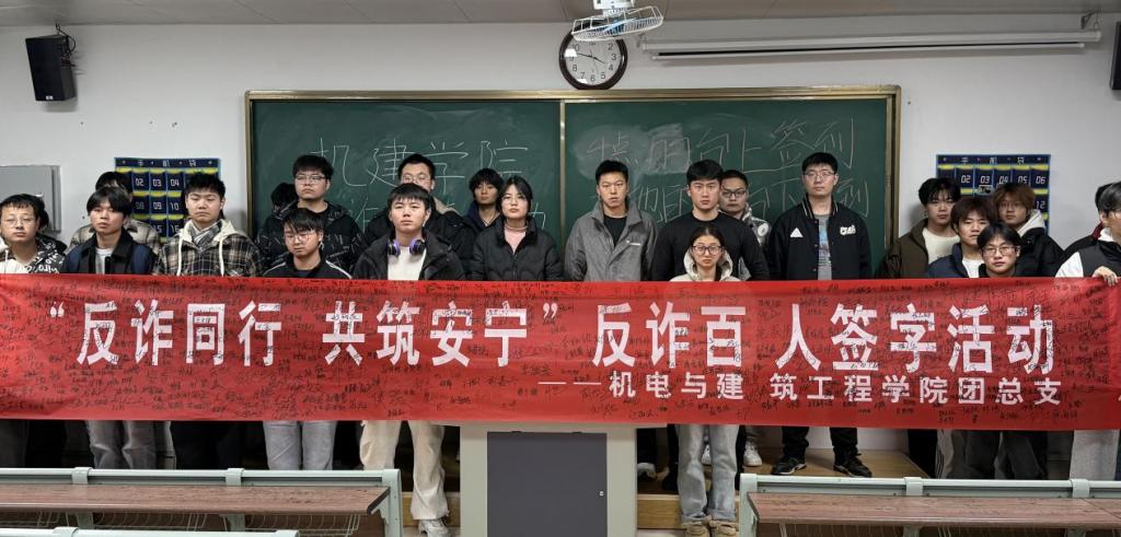 为深入贯彻校园安全教育工作部署,切实提高广大师生防范电信网络诈骗的意识和能力,筑牢校园安全防线,机电与建筑学院于11月3日下午在二教206教室组织开展“反诈同行·共筑安宁”百人签字主题教育活动。本次活动超百名同学们到场并全程积极参与。