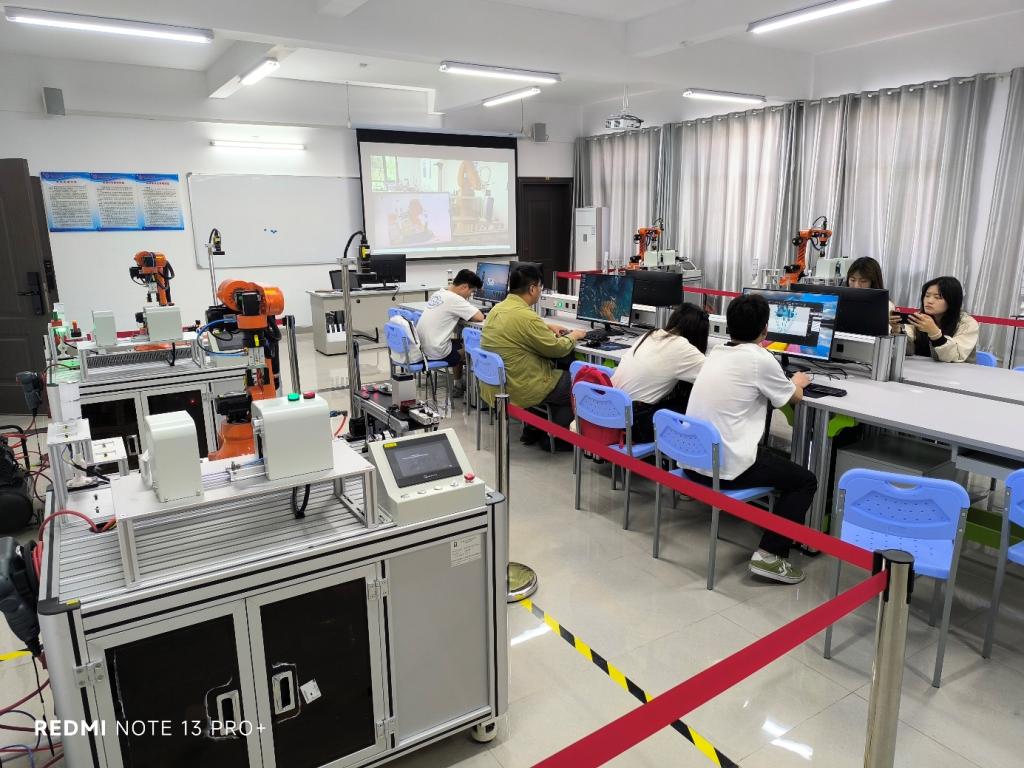 本实验室于2025年5月建设完成并投入使用,建筑使用面积115m2。工业机器人实验室包括机器人系统集成应用创新平台和数字孪生工厂设计平台。机器人系统集成应用创新平台主要由工业机器人、PLC、HMI、工业相机等组成,帮助学生学习并掌握PLC编程、人机交互界面设计、工业机器人操作、工业机器人编程配置、工业视觉检测、工业通讯应用等专业知识与技能。数字孪生工厂设计平台是集3D工艺仿真、装配仿真、人机协作、物流仿真、机器人仿真、虚拟调试、数字孪生等功能于一体的数字化工业仿真平台,软件可应用于新建工厂的产线布局设计、物流规划、价值流分析;工厂生产效率提升、精益改善;新产品研发端的可制造性分析、工艺设计、装配仿真;自动化虚拟调试、机器人轨迹规划及示教等。