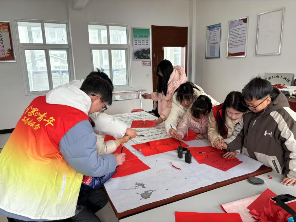 2024级电气工程及其自动化二班黄遵权同学积极响应学院“返家乡”社会实践活动号召,投身于燕子河镇的大学生公益课堂活动。主要负责指导当地学生剪窗花、写福字。活动开始前,他精心准备了所需的工具和材料,构思教学步骤。课堂上耐心细致地为他们讲解剪纸和写福字的技巧。从简单的折纸、裁剪到握笔姿势、笔画顺序,都一一示范。孩子们学得全神贯注,充分发挥创造力,一个个精美的窗花、一幅幅充满年味的福字陆续诞生。