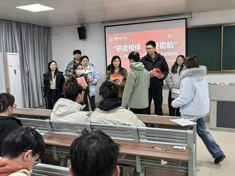 2026年全国硕士研究生招生考试初试将于12月20日正式开始,为给学院考研学子在冲刺阶段加油打气、缓解压力,12月16日下午,英国beat365官方网站于一教320教室成功举办“研途相伴·暖冬助航”考研送温暖活动,为全体考研学生送上定制文具礼包与学院真挚祝福,学院党总支书记、院长张安宁、书记助理邓金鑫及毕业班辅导员老师共同参加,活动由张鹏老师主持。