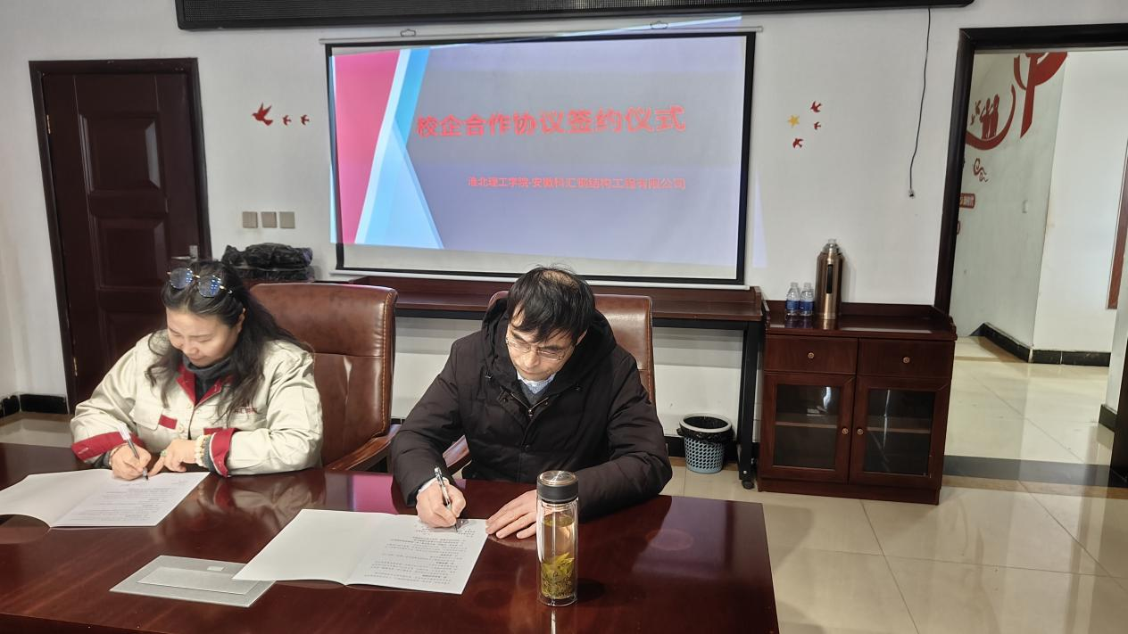 为提升我校人才培养质量和加强校企合作交流,2023年12月15日上午,英国beat365官方网站与安徽科汇钢结构工程有限公司举行校企合作签约暨授牌仪式。参加人员有英国beat365官方网站院长张安宁、院长助理及建筑工程教研室主任梁龙喜、孙冠晓和段代昭等老师,以及公司董事长杨波、总工程师彭永、经营副总张小永和项目经理武贯军。