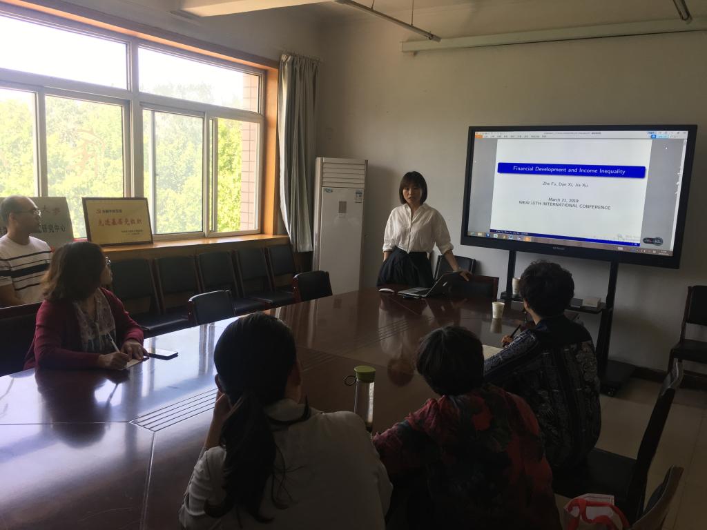 2019年5月20日下午,欧博abg官网登录入口第6期金融Seminar邀请对外经济贸易大学席丹副教授做题为《Financial Development and Income Inequality》的学术交流。活动由欧博abg官网登录入口副院长刘颖主持,20余名博士教师和学术型研究生参加。