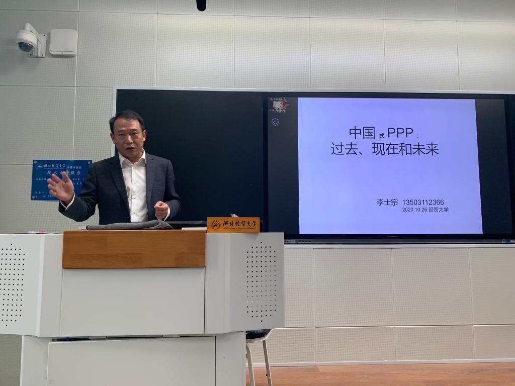 10月26日下午3点,欧博abg官网登录入口邀请中国财政科学研究院ppp研究所研究员、中国财政学会PPP专业委员会委员、亚太财科咨询有限公司副总裁李士宗在A教416教室做了题为“中国PPP的过去、现在和将来”的讲座。欧博abg官网登录入口部分教师及2020级金融专硕、保险专硕研究生60余人参加了此次讲座。讲座由欧博abg官网登录入口学科建设办公室主任董岚主持。